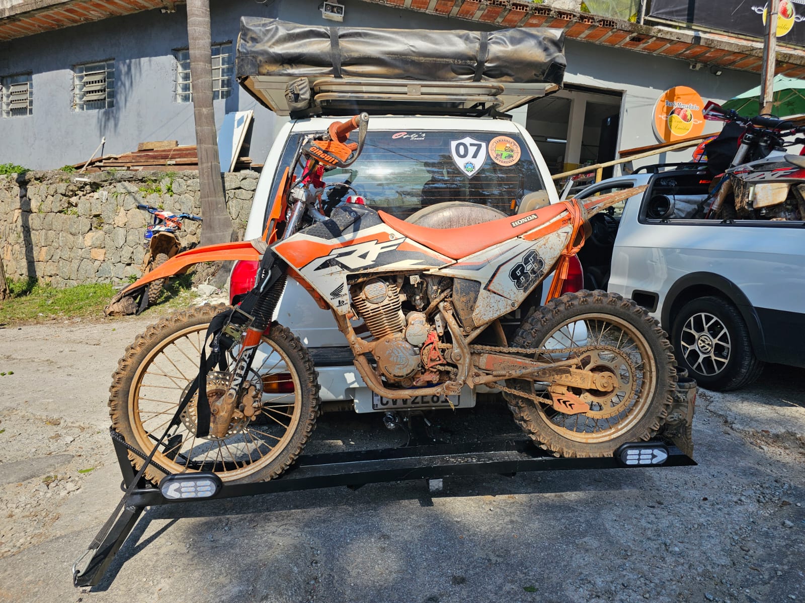 Suporte para Transporte de Moto: Perfeito para levar sua moto de trilha com segurança e praticidade, incluindo base de placa, lanternas e chicote elétrico.